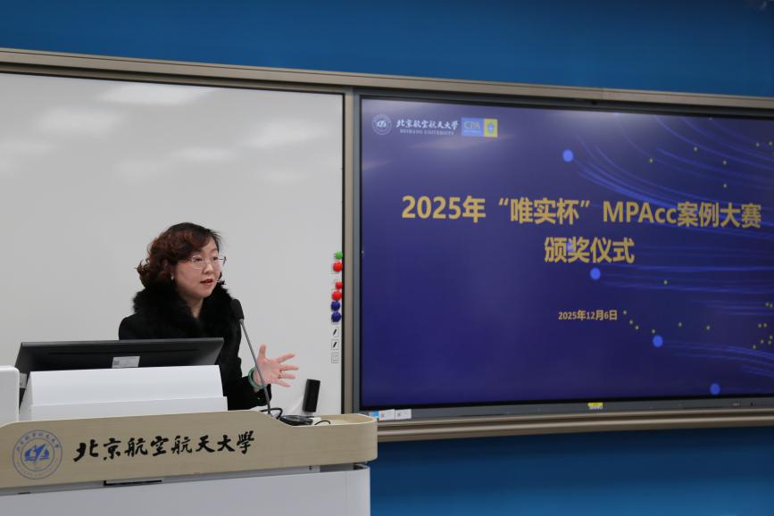 12月6日下午,北京航空航天大学经济管理学院MPAcc教育中心与澳洲注册会计师公会联合举办的2025年“唯实杯”MPAcc学生案例大赛圆满落幕,颁奖典礼在北航学院路校区新主楼A1148教室隆重举行。
