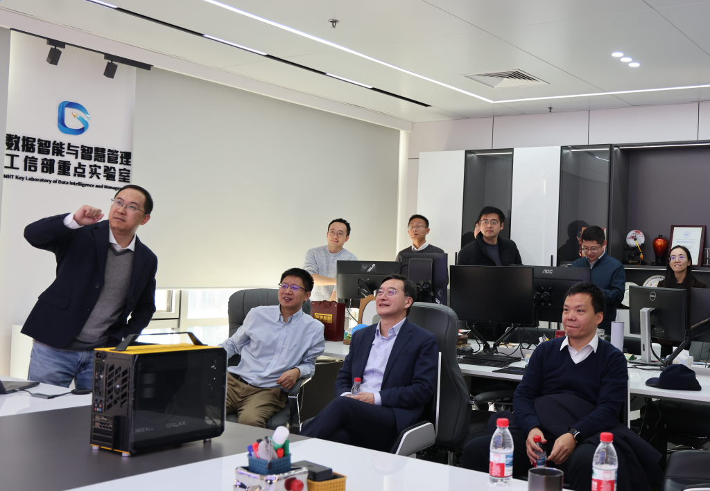 王云鹏实地走访了数据智能与智慧管理工业和信息化部重点实验室和复杂系统分析与管理决策教育部重点实验室,听取了各重点实验室关于最新研究进度和成果的汇报,并与科研人员就人才队伍建设、重大科研项目落地和人才培养等情况进行交流。