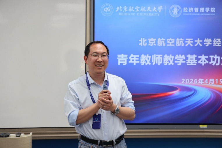 为进一步加快青年教师成长步伐,持续夯实青年教师教学基本功,不断提升课堂教学质量,4月15日,经管学院成功举办2026年青年教师教学基本功比赛。学院多名青年教师同台竞技、交流切磋,现场氛围严谨有序、热烈浓厚,充分彰显了学院重视教学、深耕教研的良好风气。本次比赛由学院副院长牟晖主持,经管学院吴俊杰院长出席并致辞。吴俊杰院长强调,课堂教学是人才培养的核心阵地,青年教师是学院教学队伍的新生力量,更是提升教学质量、推动学科发展的关键支撑。他表示,学院将持续助力青年教师快速成长为新时代高素质教师。