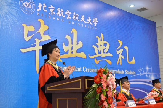 在热烈的掌声中,经管学院院长王惠文教授深情致辞,她代表学院师生向圆满完成学业的毕业生表示最热烈的祝贺,向所有为毕业生成才辛勤付出的亲人、师长和朋友致以崇高的敬意和衷心的感谢。2013届硕士研究生在校两年来,刻苦努力、孜孜求索,在学业上取得了长足进步。在校期间,携手欢度学院55周年校庆,共同筹办学校甲子庆典,一同见证了学院和学校的飞速发展。王院长对即将告别母校的学子提出殷切的希望:一是要进一步强化自己的学习能力和思维能力,开阔眼界、打开心界、提高境界,这样才能在复杂多变的环境中高瞻远瞩永远立于不败之地;二是要坚持北航学子踏实勤奋的工作作风和求真务实的工作态度,有意识锻炼执行能力、组织能力、团队协作能力以及影响力和领导力,扎实前进追求卓越;三是真正做到爱岗敬业、忠于职守,做一个能够真心奉献的人、忠诚组织的人、有社会责任感的人、以及有人文关怀的人;最后王院长代表全院老师真诚期待毕业生同学无论身在何方,都能情系母校,关心和支持学院的建设与发展,常回家看看。