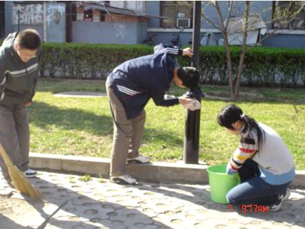 360821班和360861班的志愿者则来到了北航社区为这些老年人做一些公益服务并同时向他们了解,他们对于奥运会的看法及奥运会对于他们日常生活的影响。