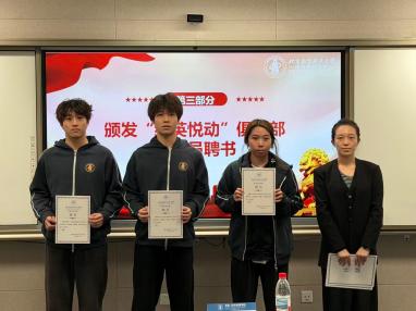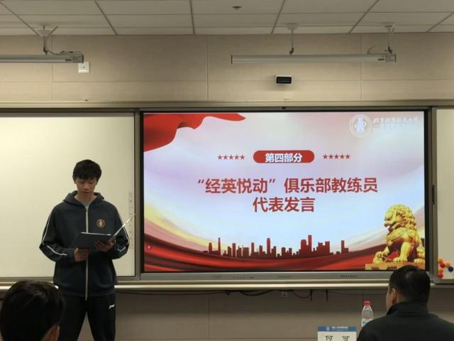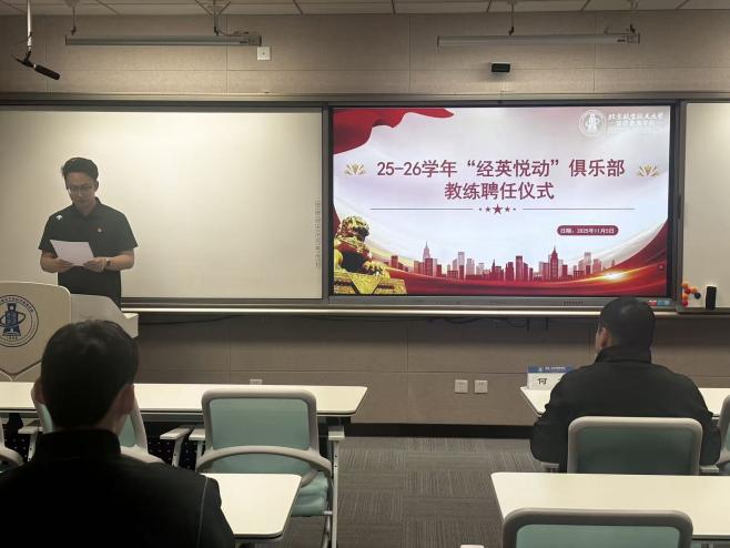 2025年11月5日下午14:00,经济管理学院在新主楼A949召开了秋季学期党员先锋队“经英悦动”体育俱乐部教练员聘任仪式。体育部教师何可、经济管理学院专职辅导员张旭瀛、俱乐部相关负责人及全体新任教练员共同出席。