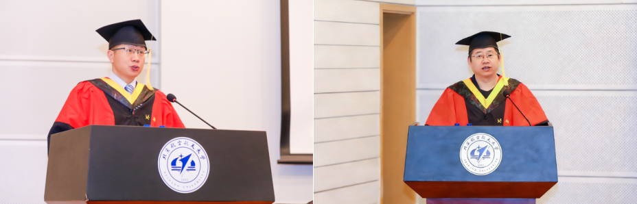 随后,全日制毕业生代表徐璞、非全日制毕业生代表牛欣荟分别发言。他们深情感谢学院搭建的科研发展平台与导师的悉心培养,结合在科研求学、“一案两实”及多元活动中的成长感悟,坚定表示将秉承北航人务实笃行的精神血脉,以实际行动践行使命担当,为社会发展贡献力量,为母校续写荣光。