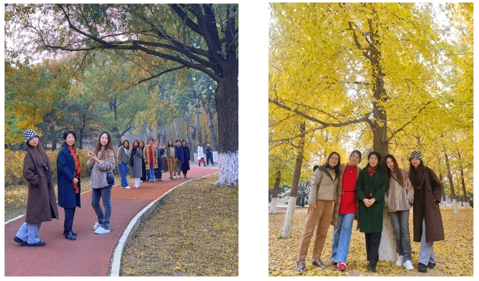 活动集合地点设在北航新东门。虽气温仅十摄氏度出头,但教师们精神饱满、热情洋溢,着装简便而整齐,笑声早已驱散了微凉。到达奥林匹克森林公园后,映入眼帘的便是层林尽染的秋景:一侧银杏林铺满金叶,阳光透过树梢洒下柔光;另一侧粉黛乱子草连成花海,粉色轻盈如雾,如霞似锦,随风摇曳,令人沉醉。老师们纷纷停下脚步,用镜头记录这份难得的秋日浪漫。