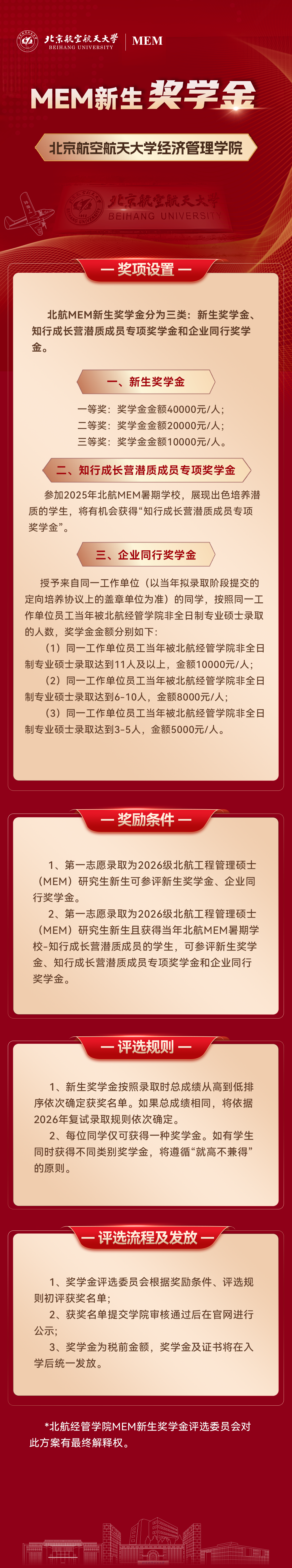 北京航空航天大学经济管理学院2026级MEM新生奖学金发布