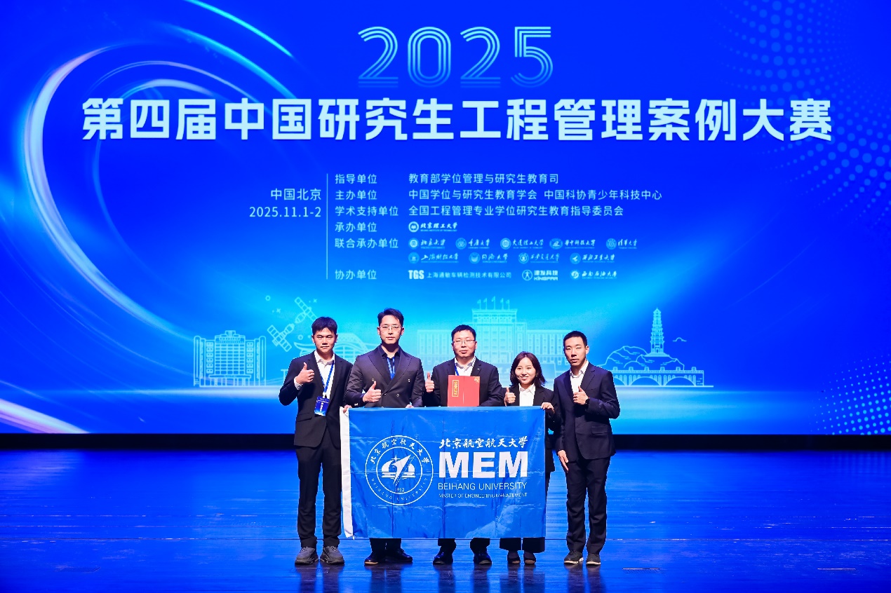 1 1 月1日 -2 日 ,第四届中国研究生工程管理案例大赛总决赛在北京圆满落幕。经过激烈角逐,北 京航空航天大学经济管理学院 MEM团队 表现优异,喜获 全国 二等奖1项、三等奖5项 , 同时, 北京航空航天大学荣获优秀组织单位奖 。(北航MEM二等奖获奖团队合影)(北京航空航天大学获优秀组织单位奖)中国研究生工程管理案例大赛是“中国研究生创新实践系列大赛”的主题赛事之一,由中国学位与研究生教育学会、中国科协青少年科技...